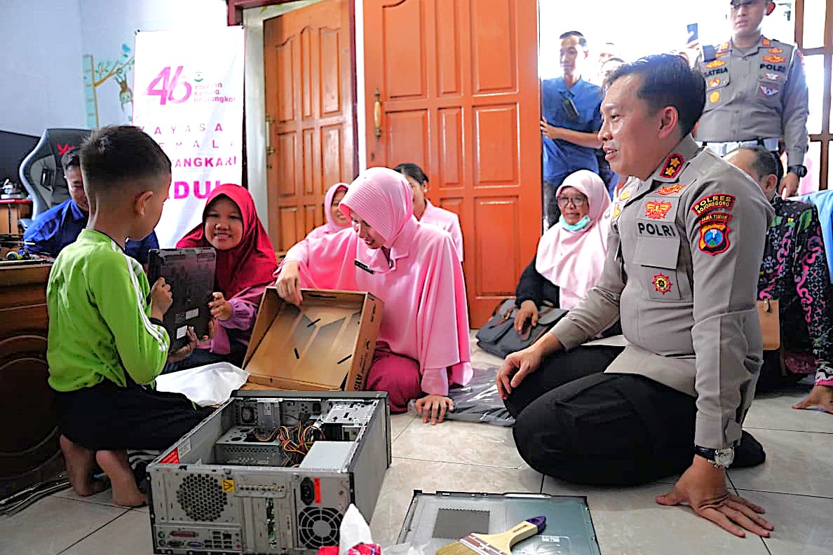 Hari Jadi YKB ke-46, Kapolres Bojonegoro Beri Hadiah Laptop Bocah Jago Perbaiki Elektronik