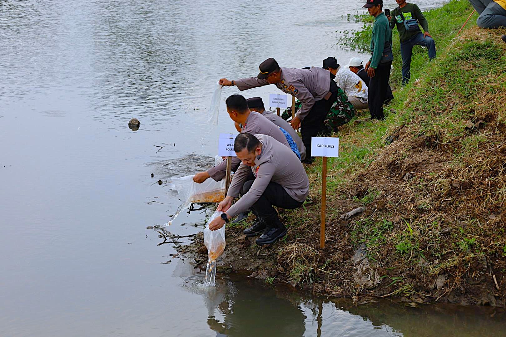 Dalam kegiatan bertema pelestarian lingkungan itu,Kapolres Tulungagung AKBP Muhammad Taat Resdi, bersama unsur Forkopimcam Boyolangu serta Kepala Desa Kendalbulur Anang Mustofa, menebar sebanyak 5.000 ekor benih ikan tombro.