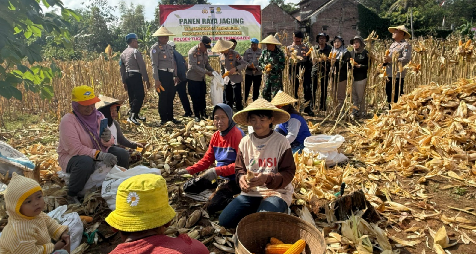 Menuju Swasembada Pangan, Kapolres Trenggalek Bersama Warga Panen Raya Jagung