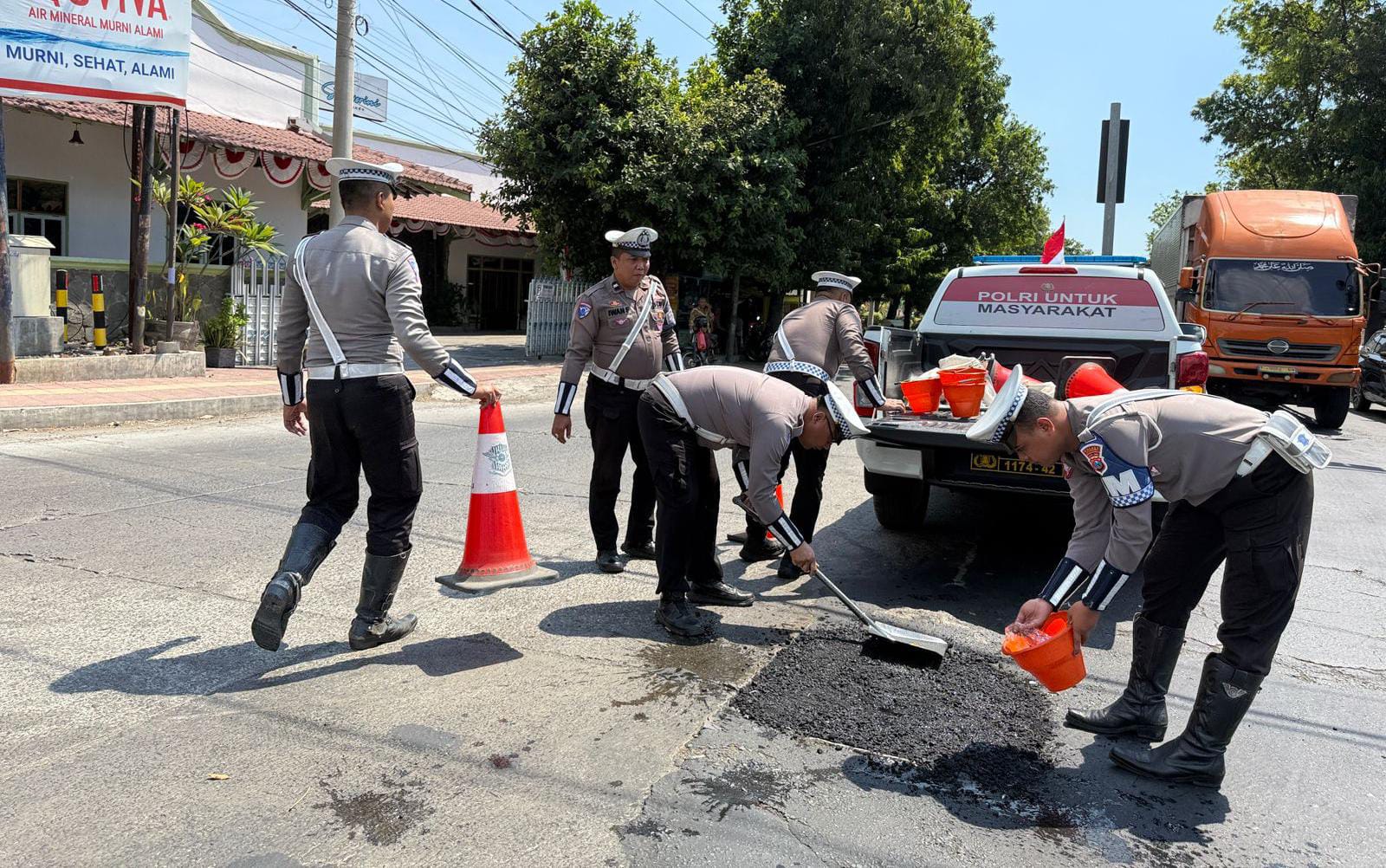 Kasat Lantas AKP Nanang menjelaskan, penanganan jalan berlubang ini merupakan bentuk kepedulian Polri terhadap keselamatan masyarakat pengguna jalan.