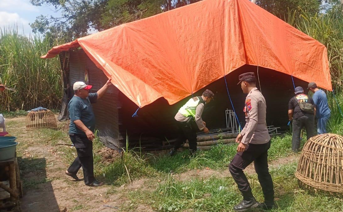 Polisi menyisir sebuah bangunan semi permanen di Dusun Krajan, Desa Srimulyo, Kecamatan Dampit, yang diduga kerap digunakan warga untuk sabung ayam.