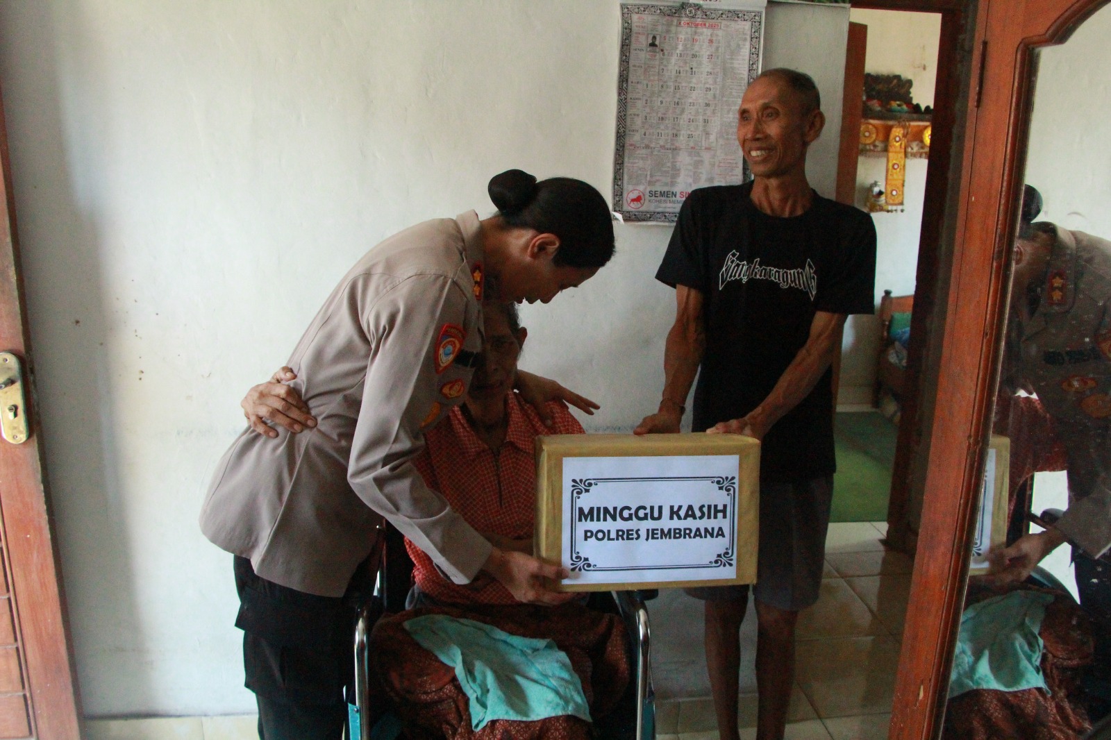 Dalam kegiatan penuh kehangatan tersebut, Kapolres Jembrana menyerahkan bingkisan bantuan kepada warga masyarakat setempat, salah satunya Ni Ketut Warni, yang tengah mengalami sakit.