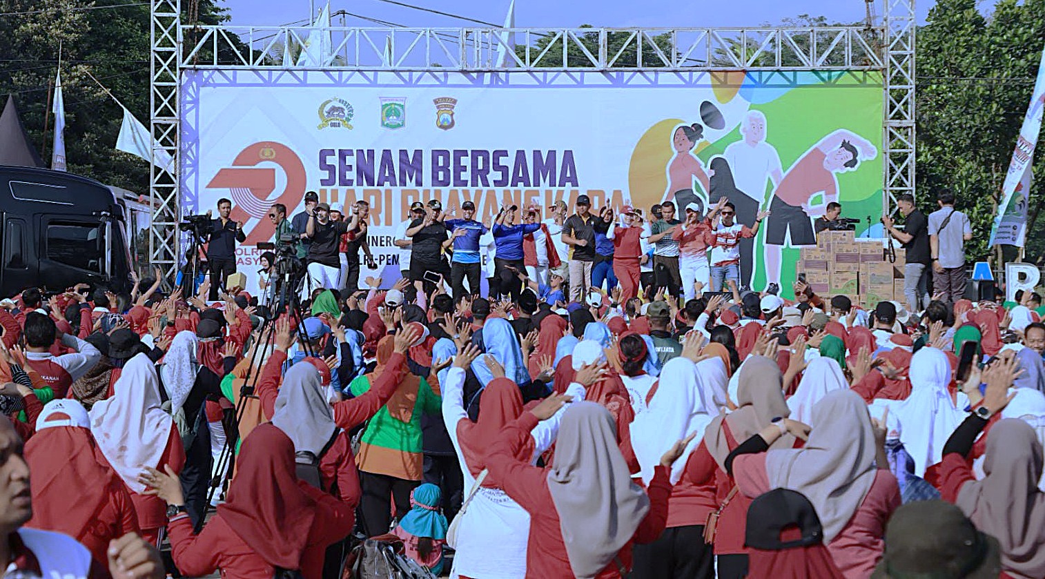 Mereka turut serta memeriahkan olah raga bersama dalam rangka Hari Bhayangkara ke -79 yang digelar oleh Polres Malang Polda Jatim dengan menggandeng TNI, Forkopimda, dan elemen masyarakat.
