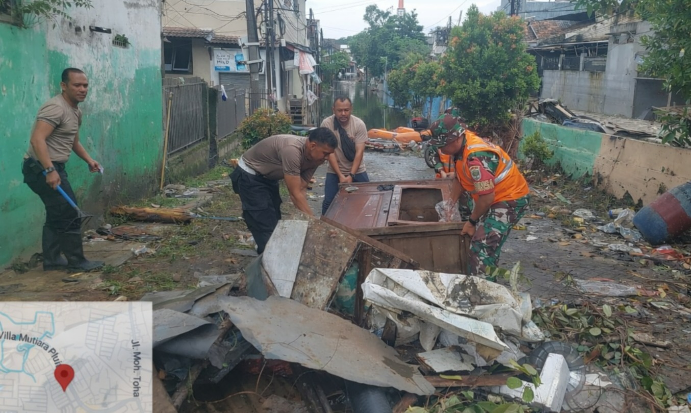 Tangerang – Sebagai upaya pencegahan banjir di wilayah rawan genangan, Polsek Jatiuwung Polres Metro Tangerang Kota bersama unsur TNI, Satpol PP, Dinas Lingkungan Hidup, Dinas Pemadam Kebakaran, Pemerintah Kecamatan dan Kelurahan, serta masyarakat melaksanakan kerja bakti massal di Perumahan Periuk Damai RW 08, Kel/Kec. Periuk, Kota Tangerang, Rabu (28/1/2026).