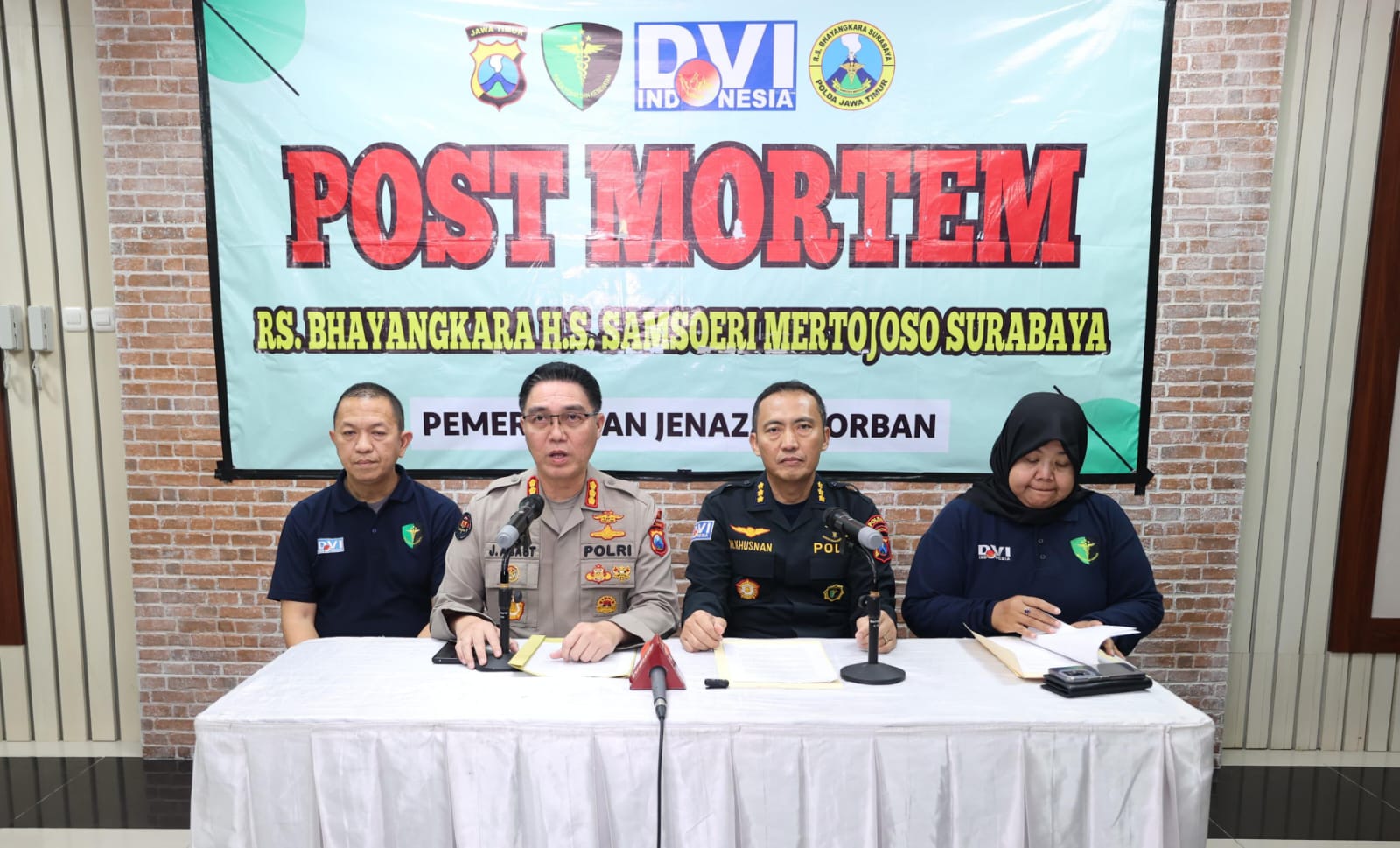 “Izinkan kami menyampaikan bela sungkawa yang sedalam-dalamnya terhadap para korban. Polda Jawa Timur bersama seluruh jajaran terus berupaya maksimal dalam penanganan identifikasi jenazah, dengan tetap menjunjung tinggi kehormatan para korban,” ujar Kombes Pol Jules Abraham Abast, dihadapan awak media.
